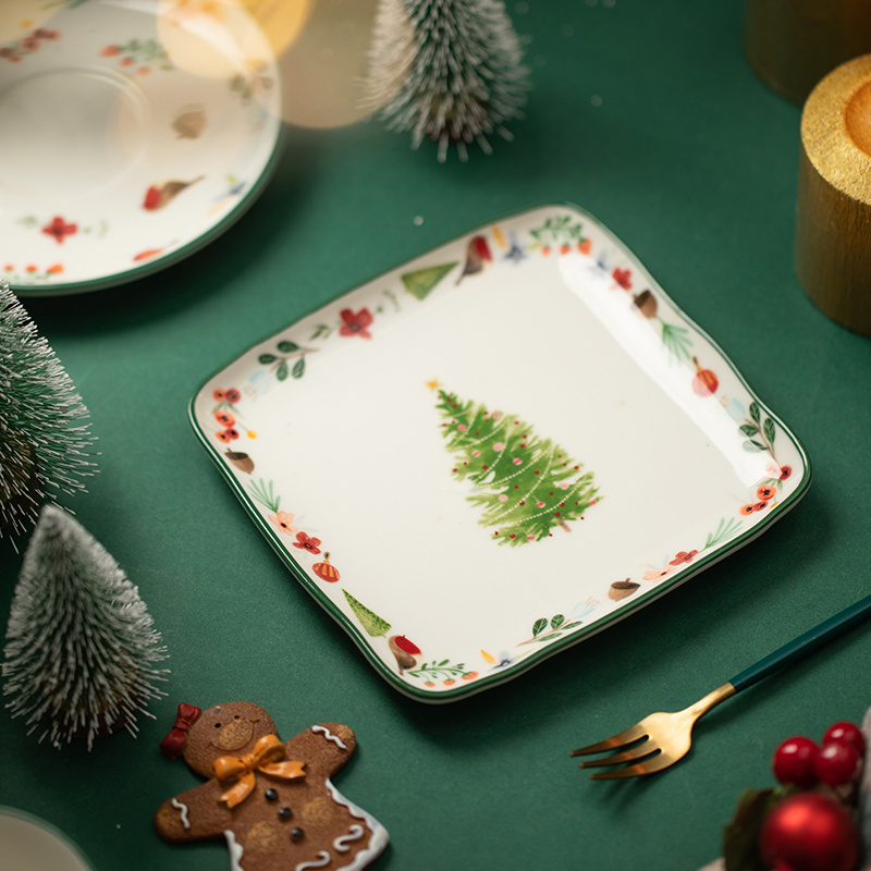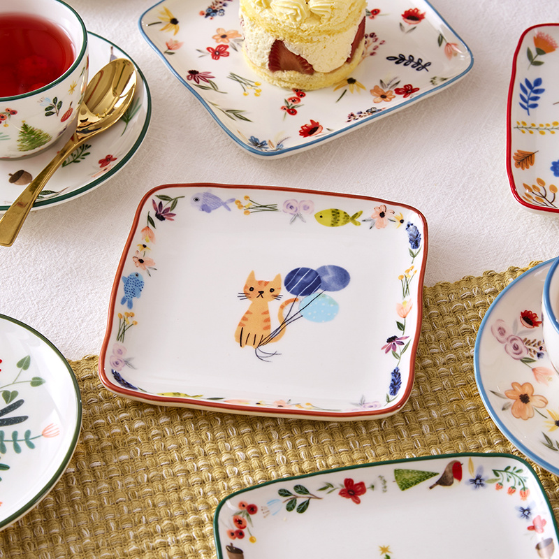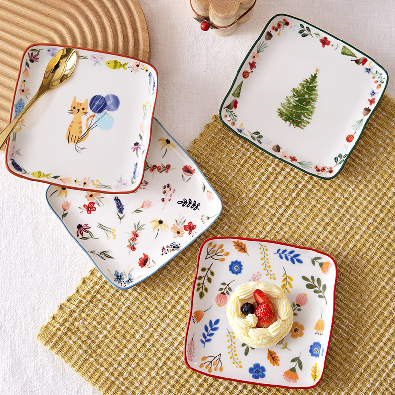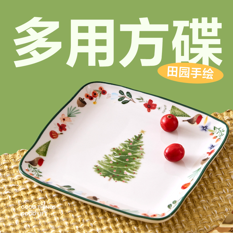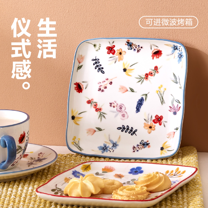 网易严选 田园手绘美式餐具系列方盘 4只装(单只15x15cm)